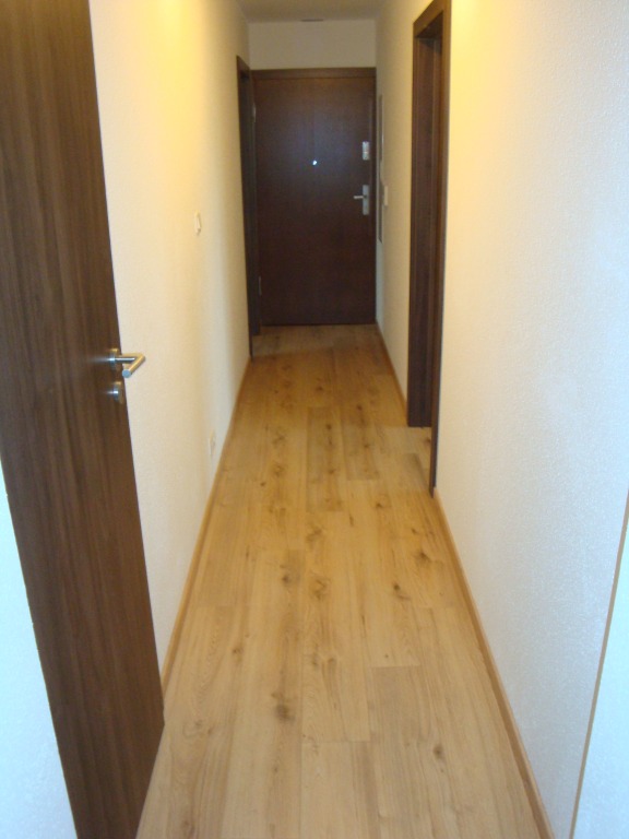 Entrée/couloir, une cuisine équipée (plaque/four/hotte), un séjour, 2 chambres, une salle de bain avec douche et un wc séparé.